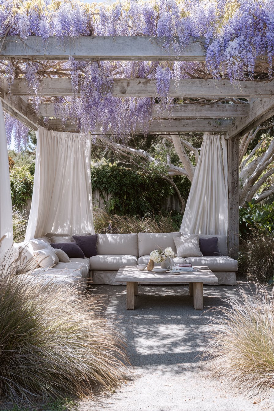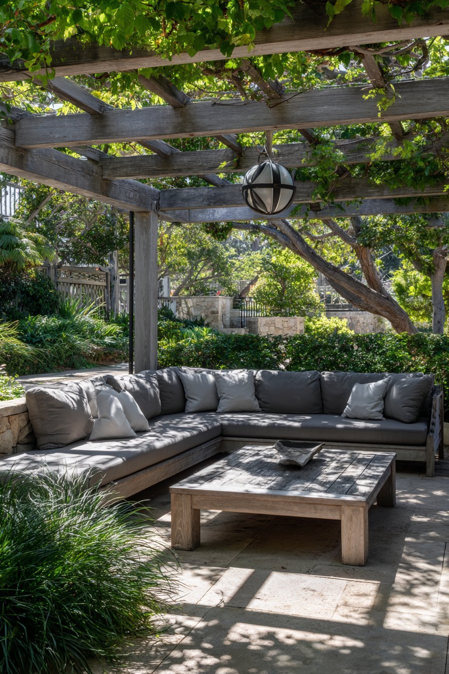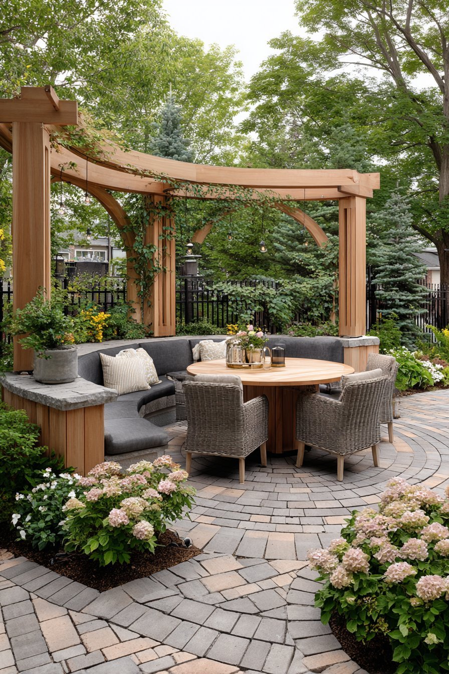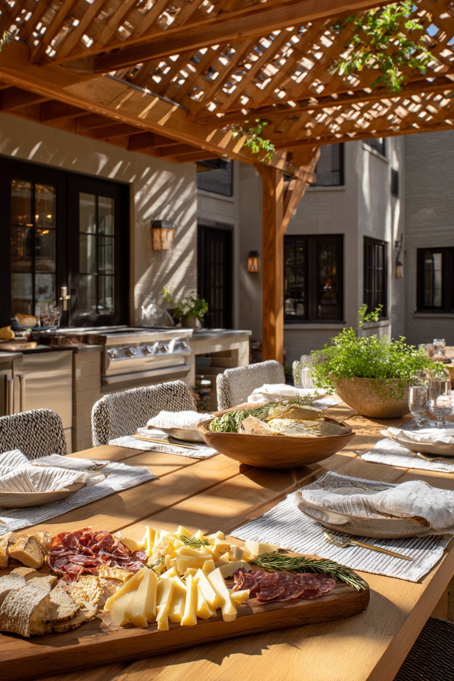 - Create a dedicated dining zone with a pergola or umbrella overhead