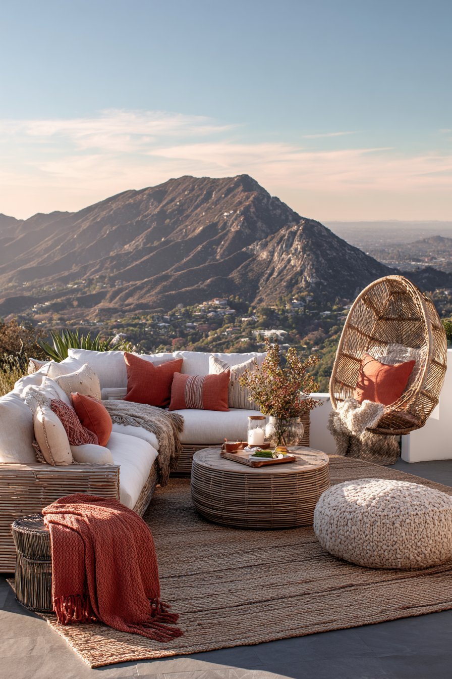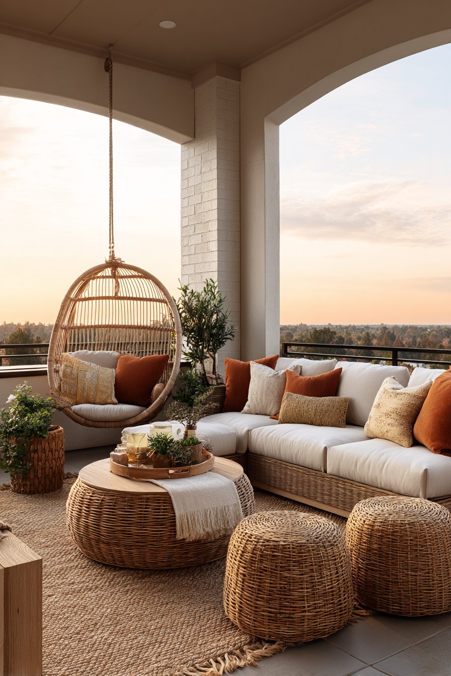 Textiles like outdoor rugs, cushions, and throws introduce color and pattern while defining zones. Choose coordinating colors that create cohesion without becoming monotonous. Seasonal updates keep the space feeling fresh—swap pillow covers or add seasonal planters to reflect changing times of year.