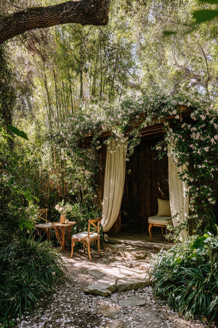The three-tier approach includes ground-level plants, mid-height shrubs, and overhead trees or tall grasses. Each layer serves both aesthetic and practical purposes, from cooling the space to attracting beneficial wildlife. Mixing evergreens with seasonal bloomers ensures your retreat never looks barren or lifeless.