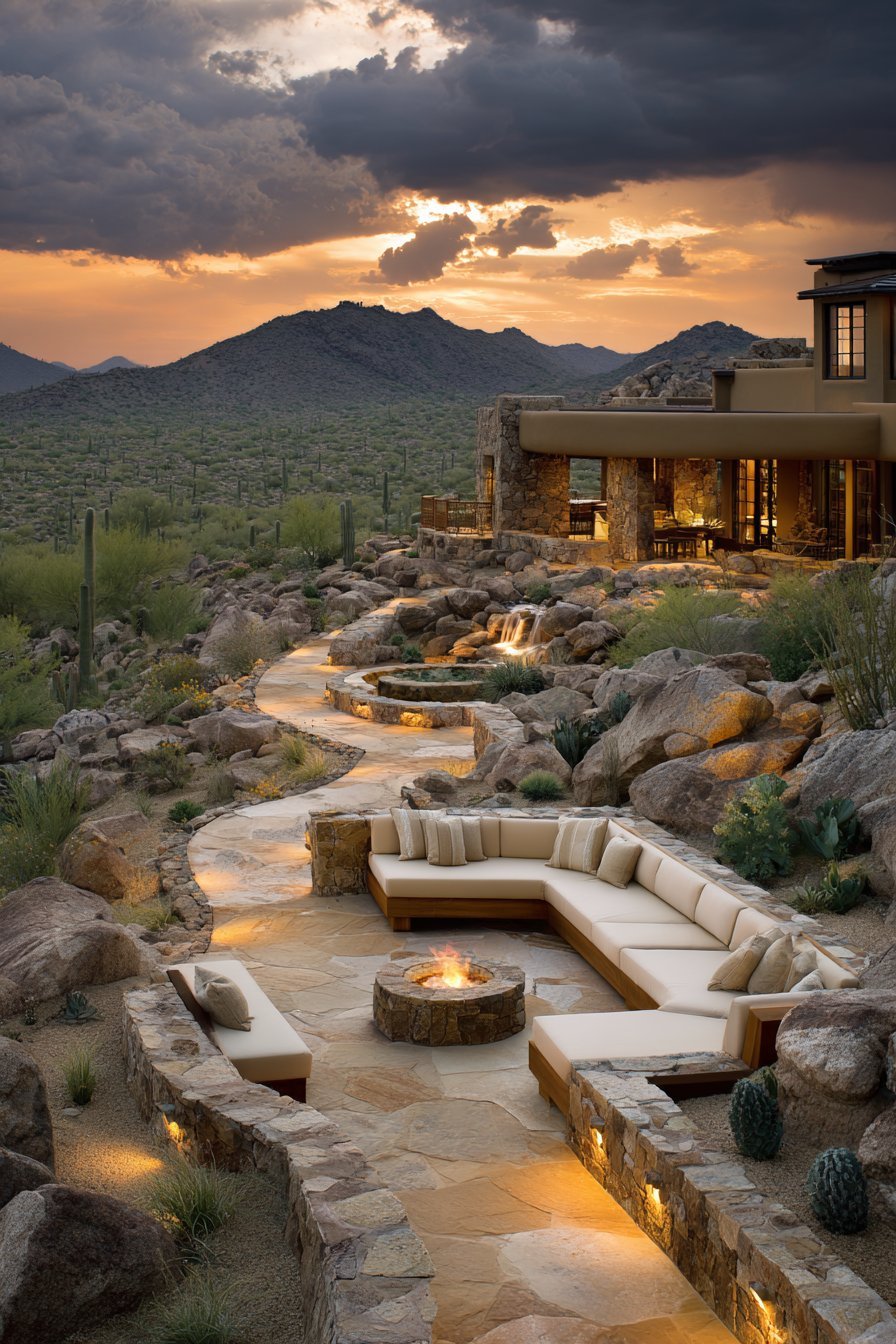 - Provide fire-resistant outdoor rugs to define the gathering zone