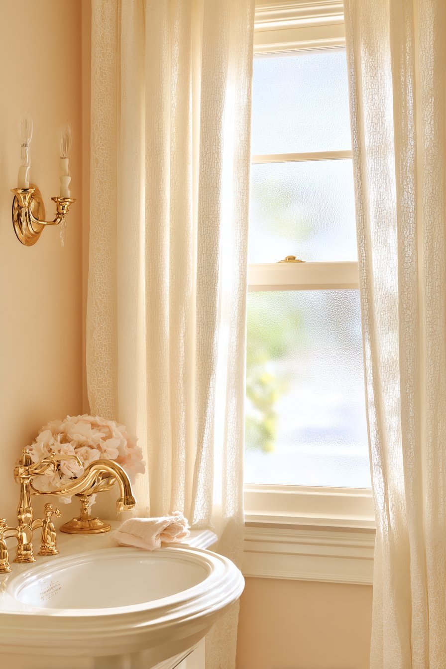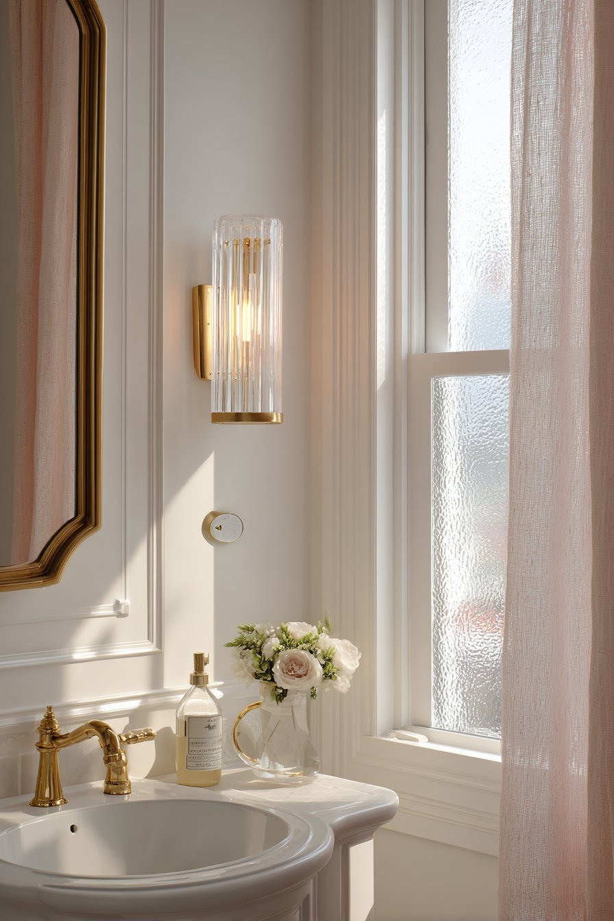 - Pair brass or gold fixtures with warm wall tones — cream, sand, warm white, or sage