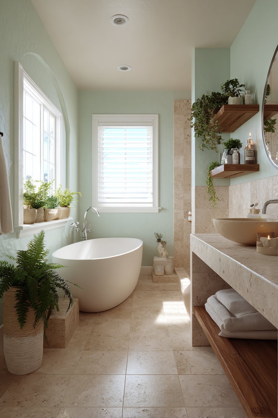 - Choose blues and greens for a calm, spa-inspired atmosphere