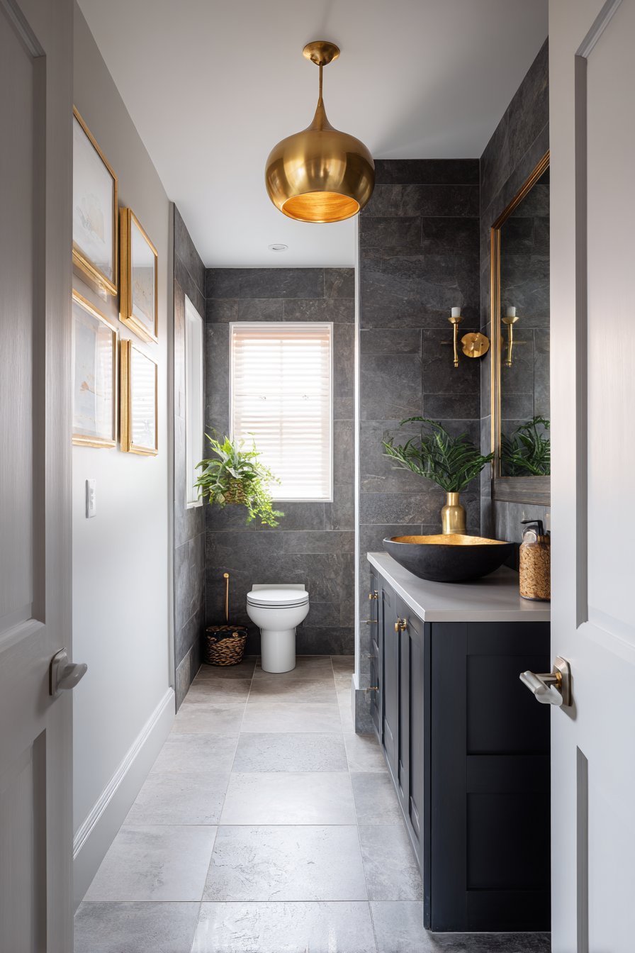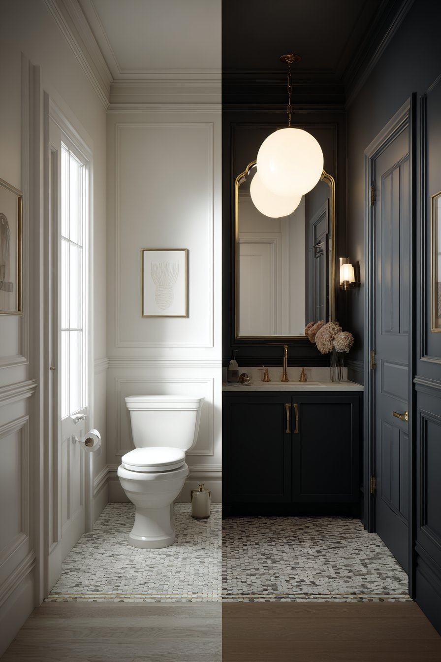 - Consider charcoal or deep navy for a bold, dramatic powder room statement