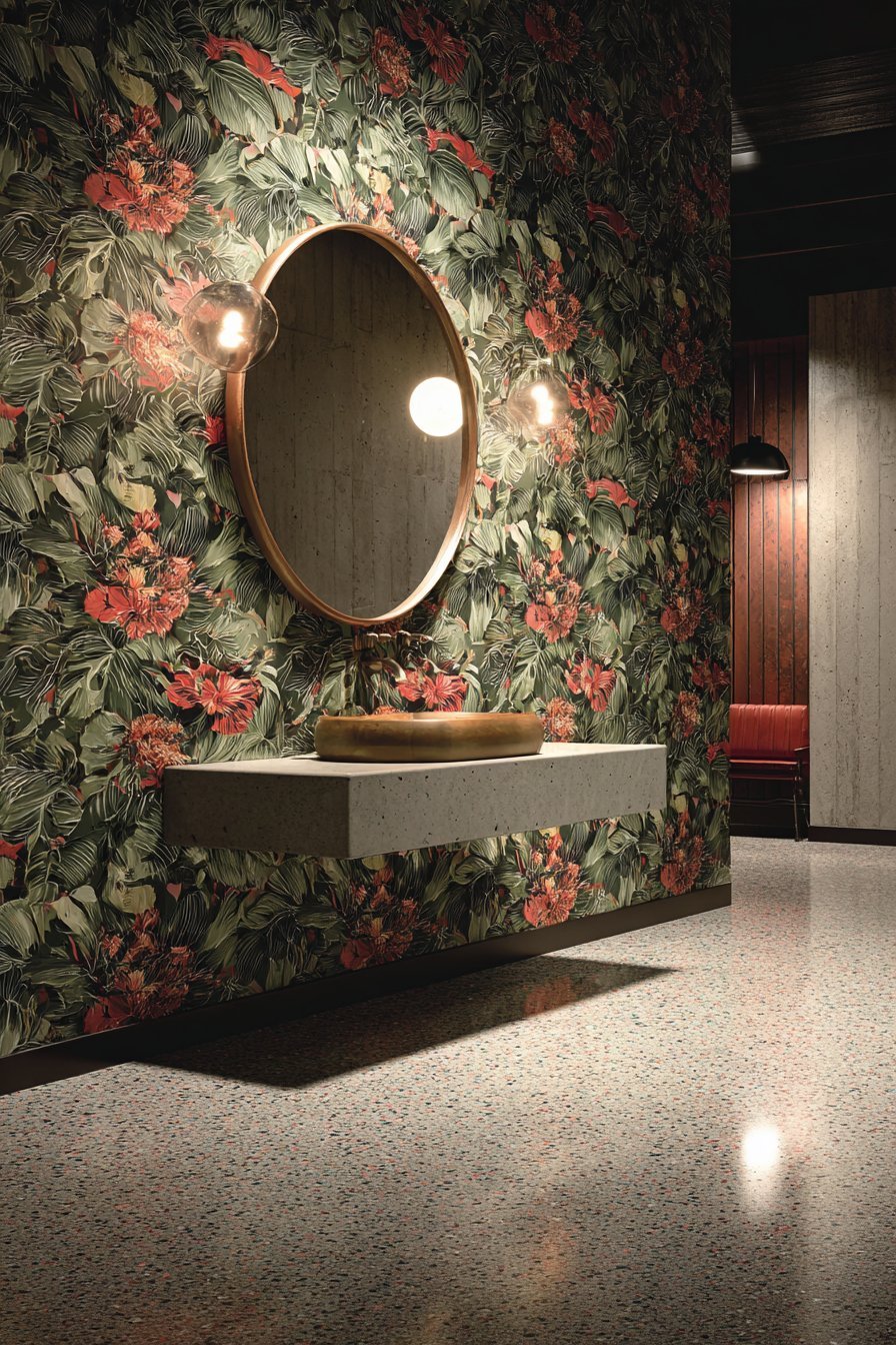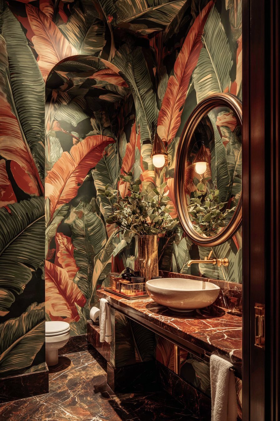 Wallpaper works especially well in powder rooms and guest bathrooms. These rooms see less steam and moisture than a primary bathroom with a shower. A bold floral, geometric, or botanical print can transform a small powder room into a showstopping space. It’s one of the most impactful design moves you can make per square foot.
