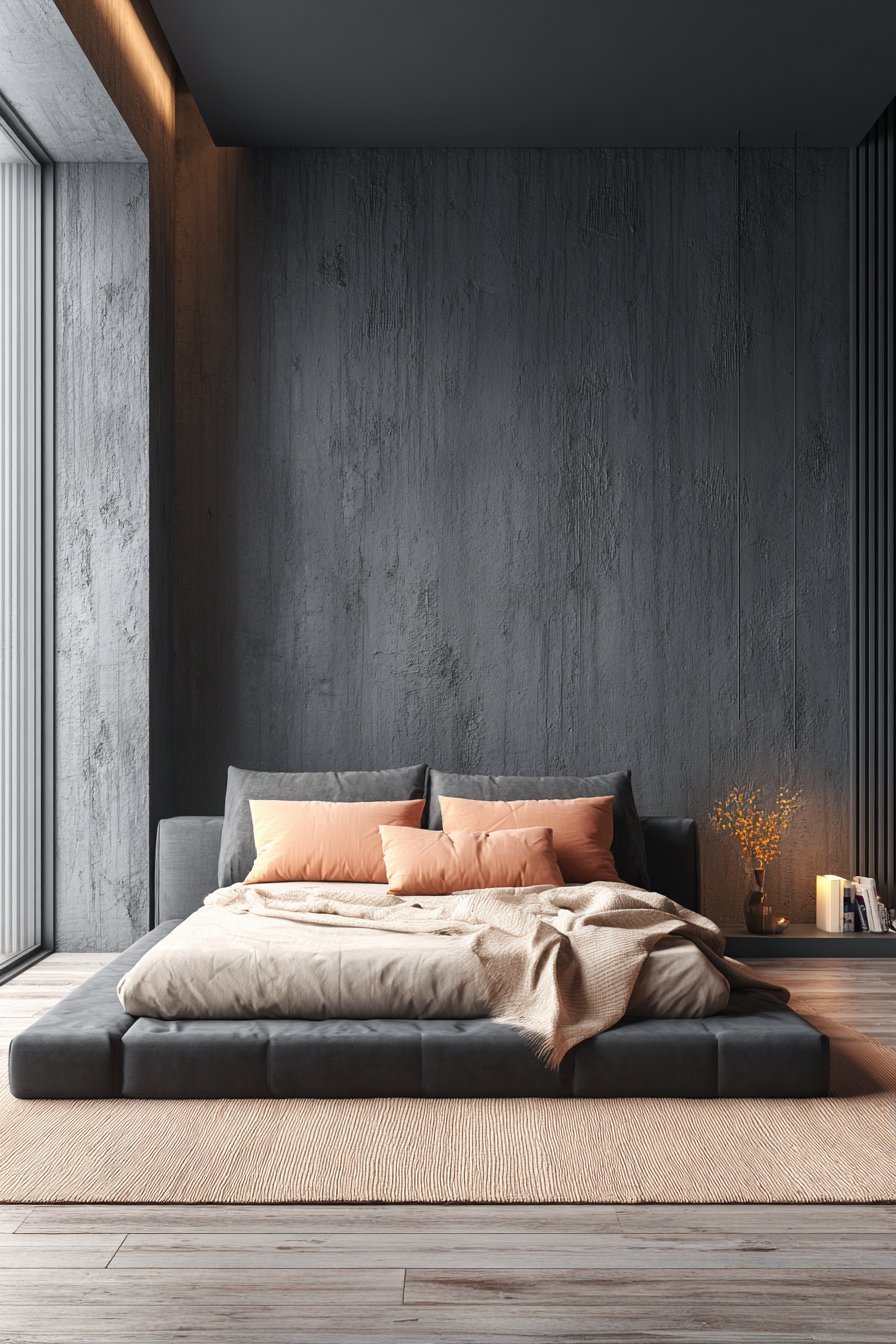Dark monochromatic spaces risk appearing one-dimensional without careful texture work. Layering different textures creates depth that the eye can explore even when colors remain similar. A velvet duvet against linen pillowcases against a chunky knit throw—these variations catch light differently, creating subtle visual interest that keeps the space from feeling flat.