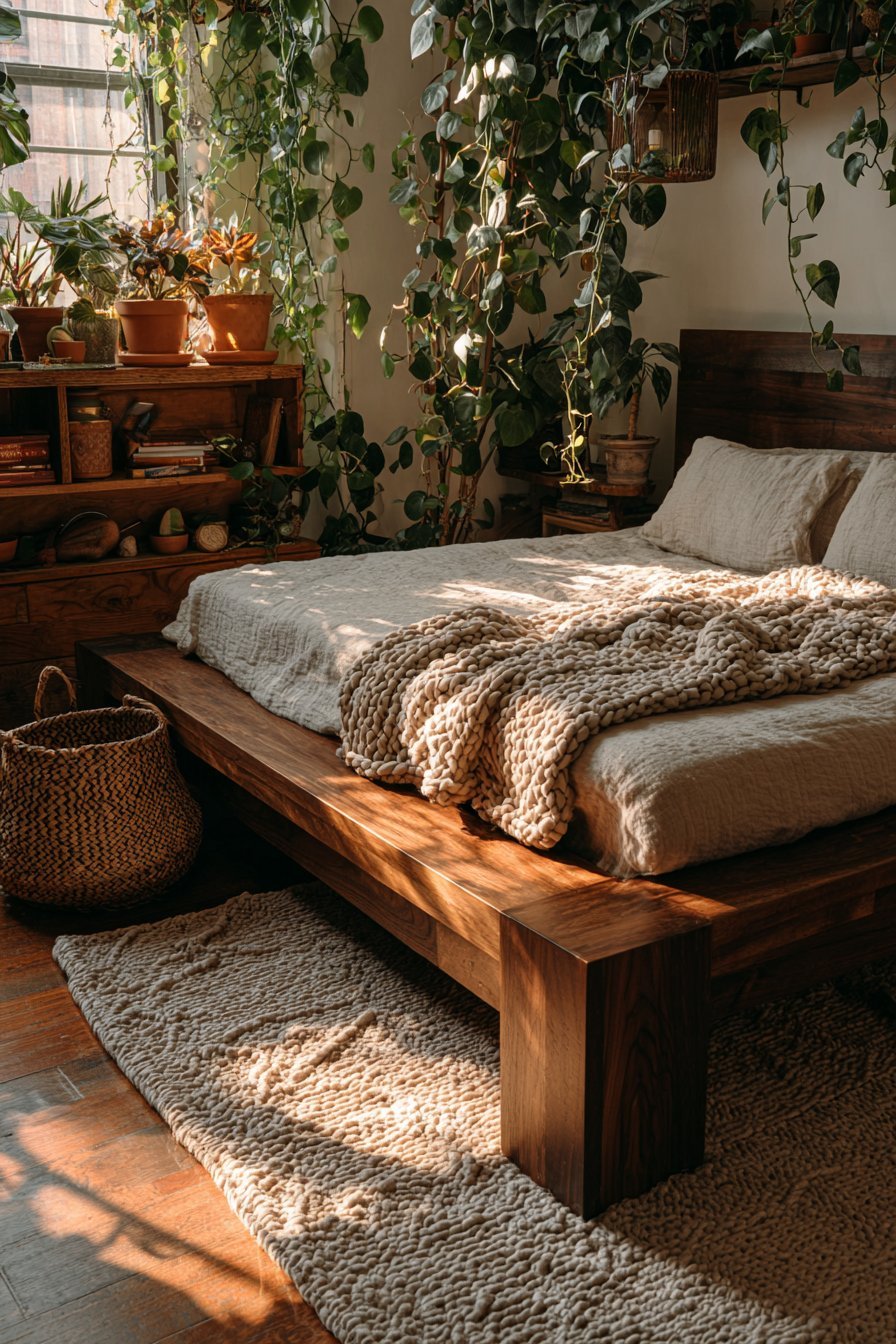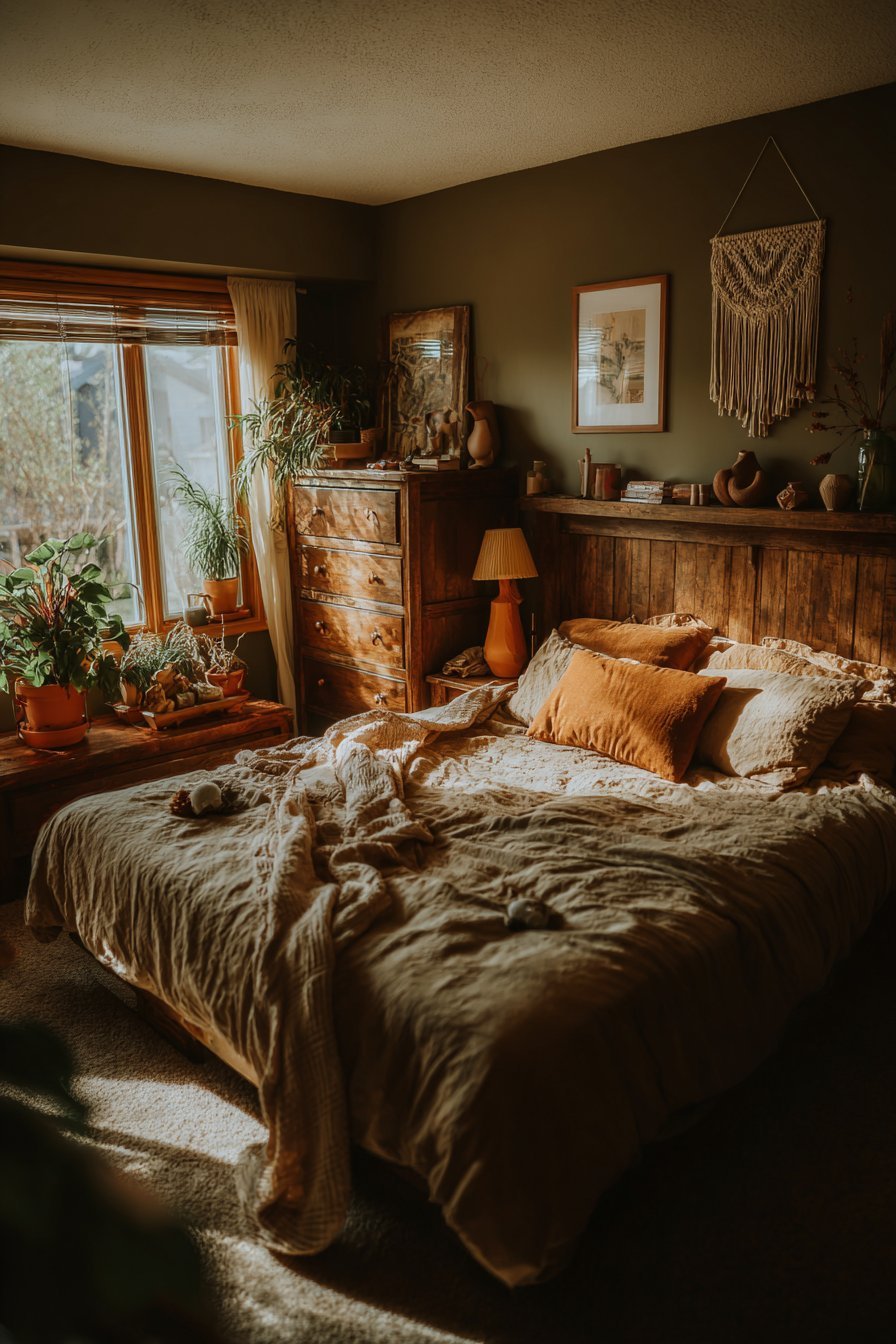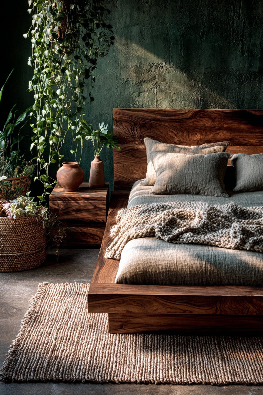 Stone, clay, and natural fiber elements amplify this connection to earth. A terracotta planter on the nightstand or linen bedding woven from flax plants adds layers of natural origin. These materials age beautifully, developing patina and character over time rather than simply deteriorating. This quality reinforces the room’s connection to natural cycles and authentic experiences.