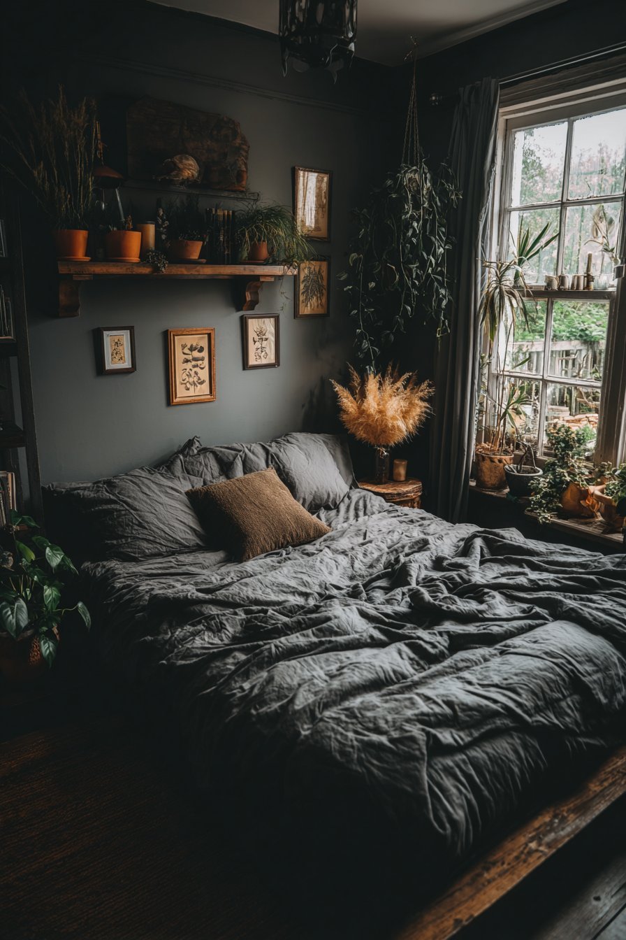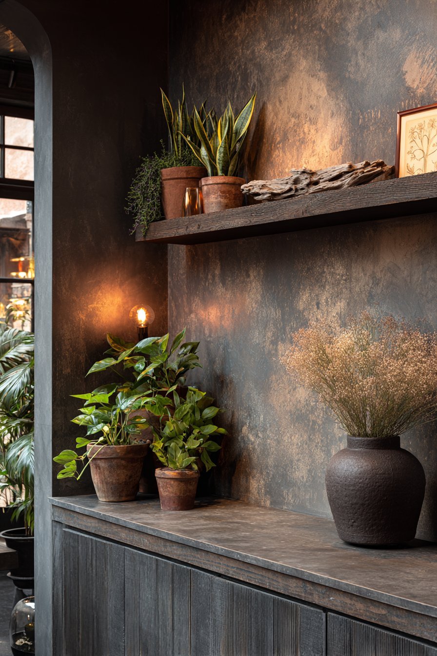 Biophilia—our innate connection to nature—plays powerfully in dark earthy bedrooms. Living plants thrive surprisingly well in darker spaces when chosen appropriately. Pothos, snake plants, and ZZ plants tolerate low light while purifying air and adding vital green contrast. Their presence literally brings life into the room, creating subtle movement and organic irregularity.