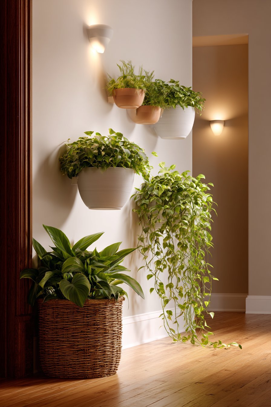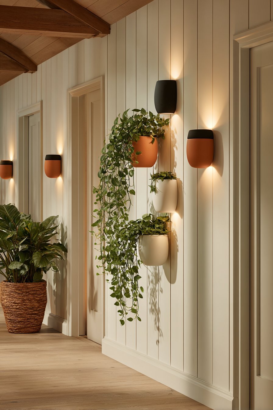 Choose trailing plants like pothos, string of pearls, or philodendrons for wall planters. Their cascading growth adds movement and visual interest. They draw the eye along the wall and create a sense of dynamic, living decor. These plants are also typically low-maintenance, making them ideal for hallways that don’t always get direct sunlight.