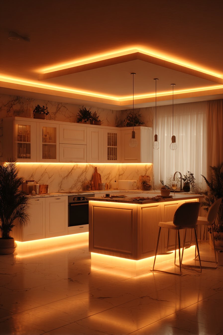 - Install under-cabinet LED strips to eliminate counter shadows