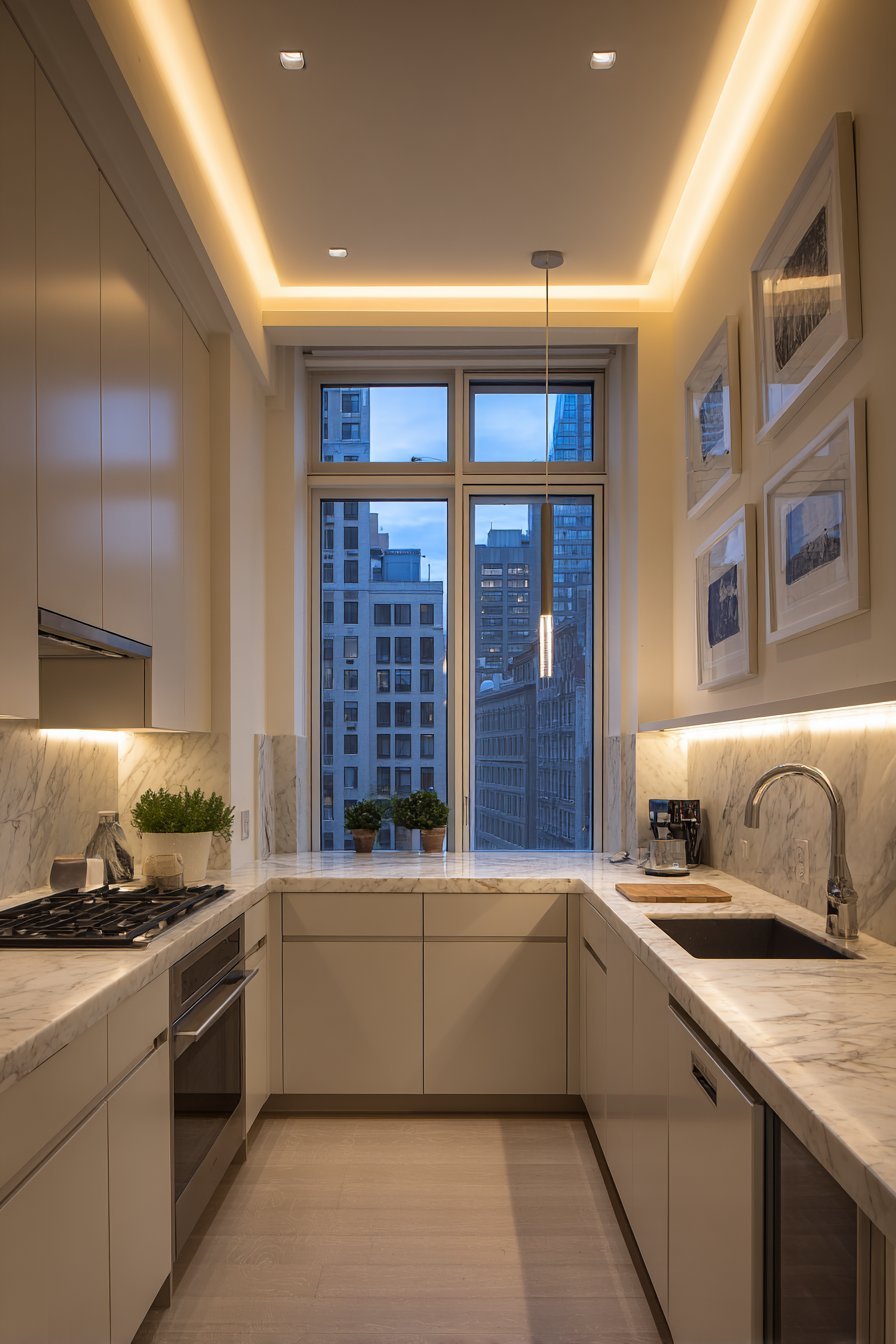 Lighting design dramatically impacts how spacious a kitchen feels, yet it’s often overlooked in small spaces. A single overhead fixture creates harsh shadows and dark corners that make the room feel smaller and more enclosed. Layered lighting that combines ambient, task, and accent sources eliminates shadows while creating depth and dimension that expands perceived space.