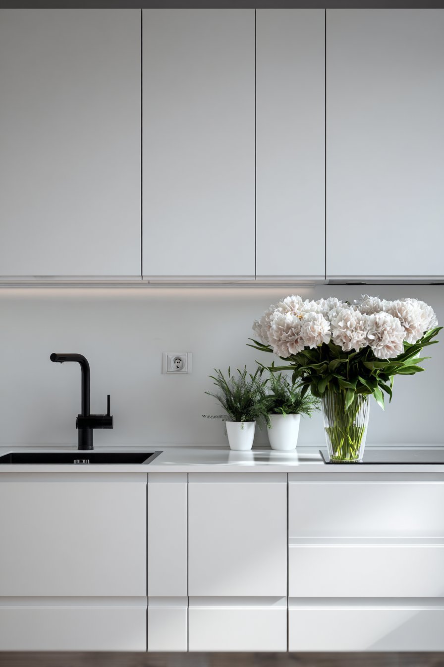 Fixtures in slim profiles and simple geometries maintain functionality without visual weight. A streamlined faucet with a low-profile spout occupies less visual space than traditional bridge faucets or elaborate designs. Similarly, thin-profile drawer pulls in matte finishes create subtle sophistication without drawing unnecessary attention or creating shadow lines that fragment the space.