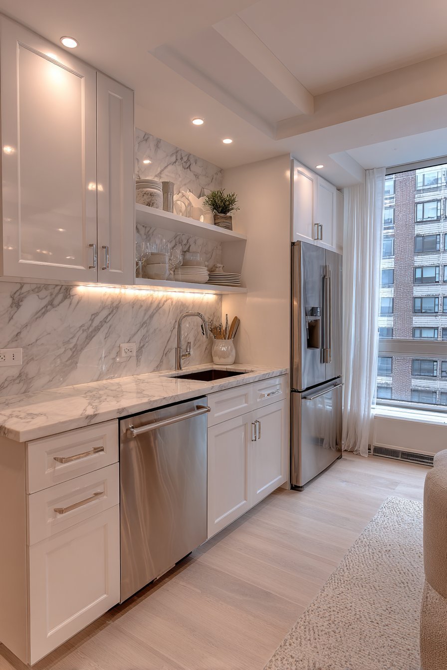Light colors are your most powerful tool for making a small kitchen feel larger and more open. White and pale neutrals reflect natural light throughout the space, creating brightness that pushes visual boundaries outward. Unlike darker hues that absorb light and create shadows, lighter tones bounce illumination around the room, making walls appear to recede and ceilings seem higher.
