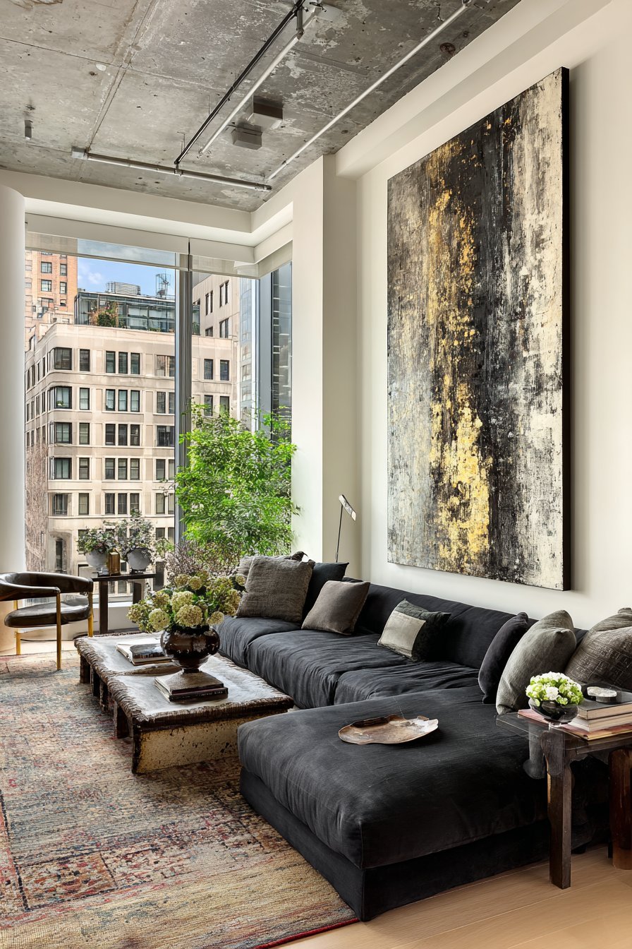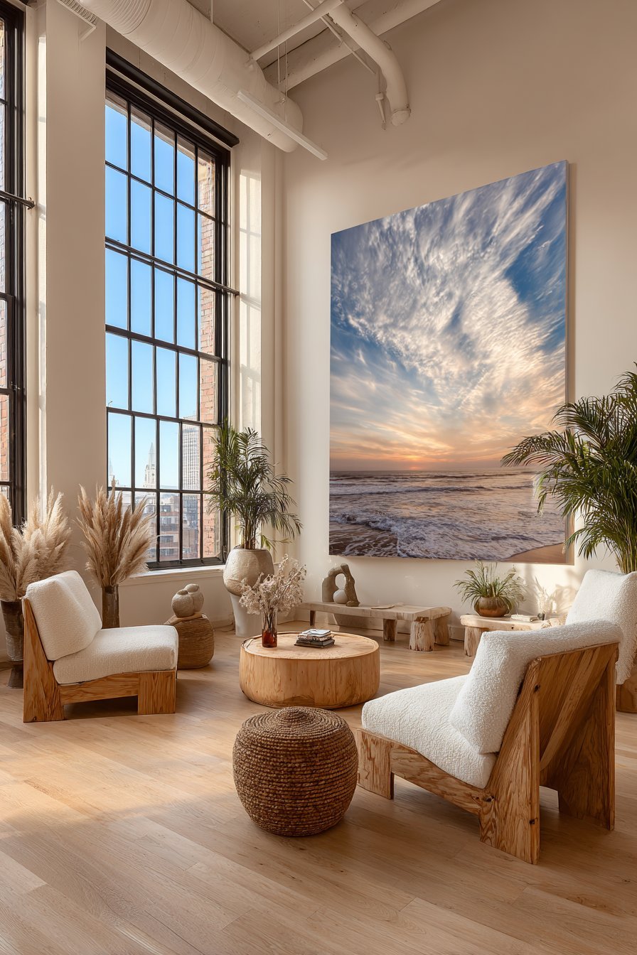 The art of creating a wall focal point lies in the combination of scale, placement, and visual weight. A single large artwork hung at the correct height — center point at approximately 145 to 155 centimeters from the floor, which places it at average adult eye level — immediately establishes itself as the room’s primary visual anchor. Everything else in the room — furniture arrangement, lighting, decorative objects — then organizes itself in response to this focal point, creating a sense of visual order and spatial coherence that rooms without a clear focal point conspicuously lack.