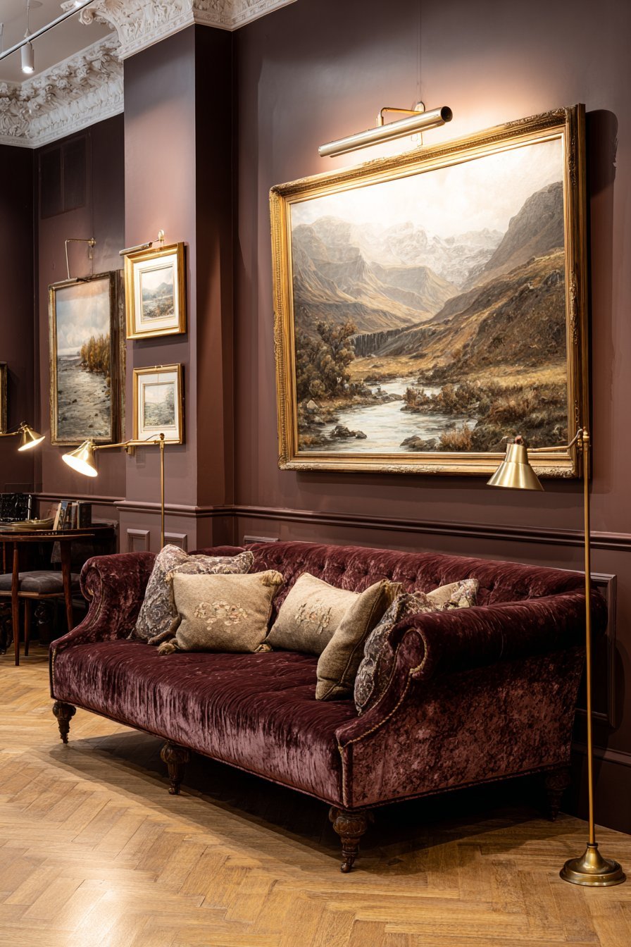 Dedicated picture lighting — a light mounted directly to the frame or on the wall above the artwork — is the most traditional and most effective way to illuminate individual statement pieces. Brass or bronze picture lights with warm incandescent or halogen-equivalent LED bulbs create a golden, flattering glow that brings out the warmth and depth of painting surfaces, textile textures, and decorative wall objects. These lights also signal intentionality — they communicate that the artwork beneath them is worth specifically illuminating, which increases the perceived value and significance of the piece in the viewer’s eye.