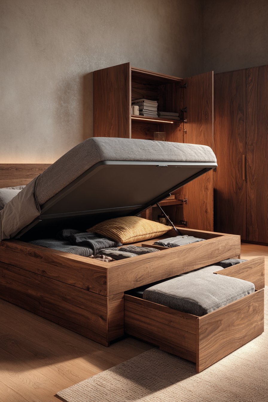- Consider furniture with lift-top mechanisms for hidden storage access
