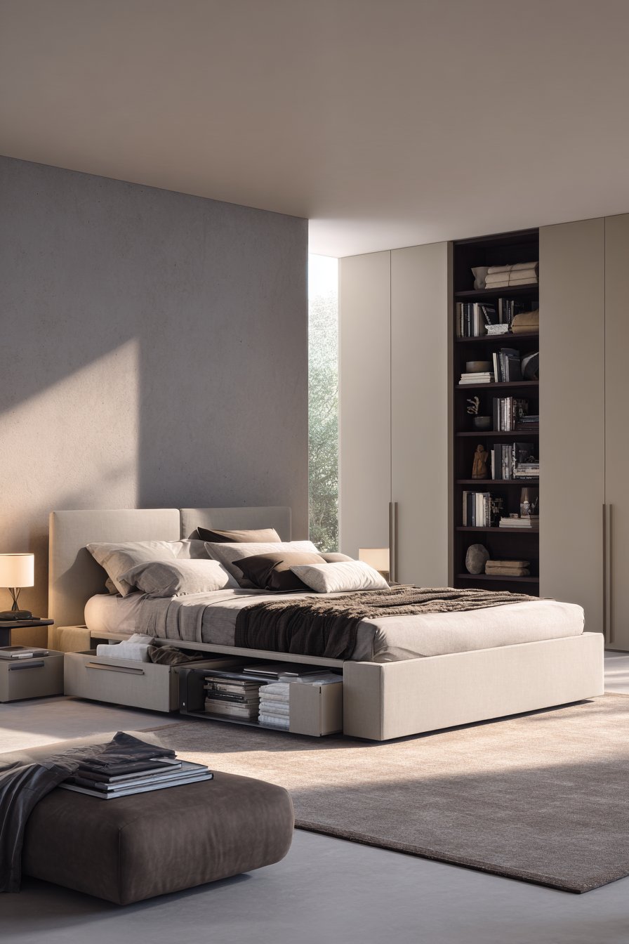 Platform beds with integrated storage eliminate the need for separate dressers or storage units. These designs typically feature deep drawers on either side or hydraulic lift mechanisms that reveal substantial storage beneath the mattress. This single furniture choice can replace multiple pieces while maintaining clean lines and modern aesthetics.