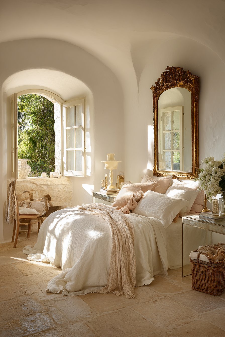 - Choose white or light-colored bedding to create an airy atmosphere