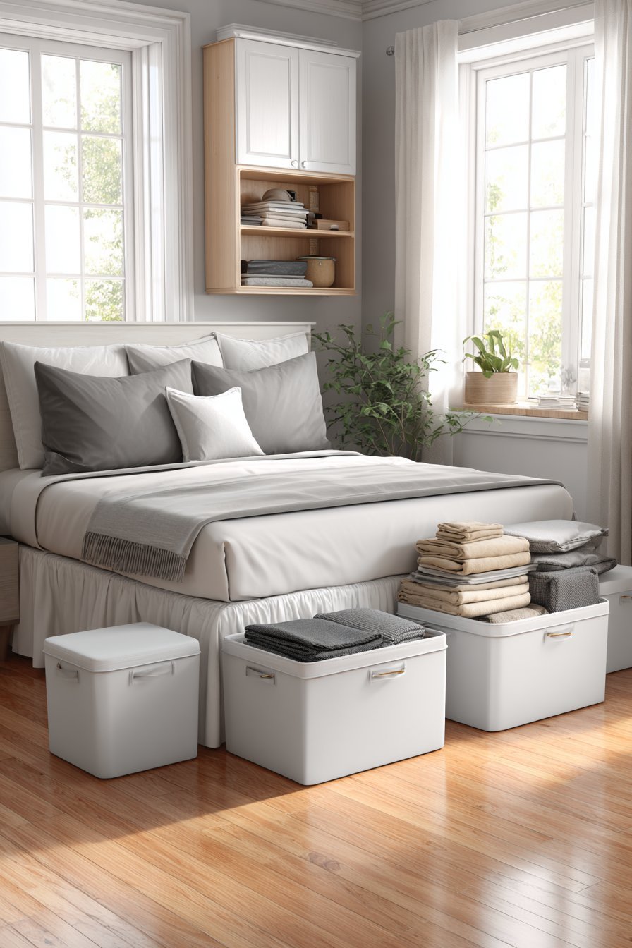 - Install a bed skirt to conceal under-bed storage containers