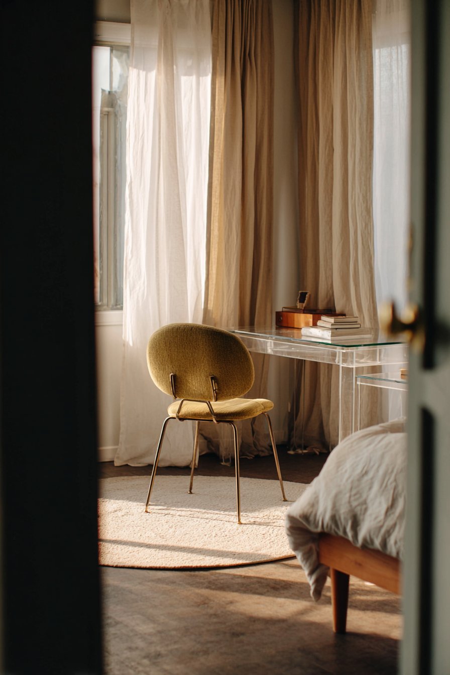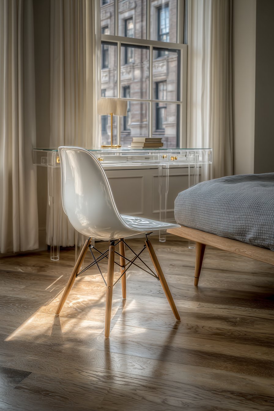 Transparent furniture creates visual lightness that seems impossible with traditional solid pieces. Acrylic chairs, glass tabletops, and lucite accessories allow light to pass through, reducing visual weight. These pieces provide functionality without adding bulky presence that makes small rooms feel cramped.