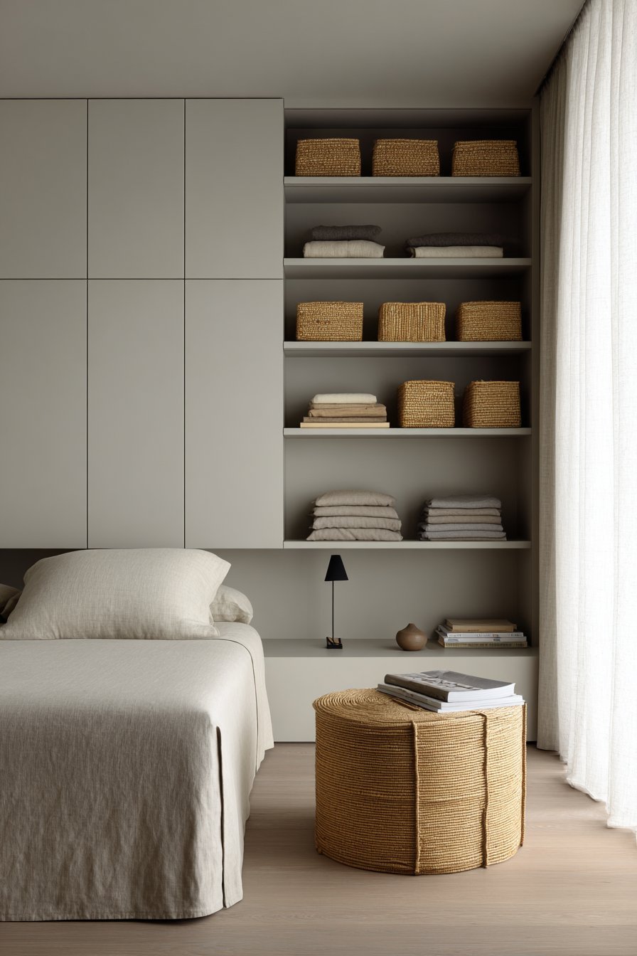 Built-in storage behind walls or within existing furniture creates seamless organization systems. Recessed medicine cabinets, wall niches with doors, and hollowed headboards provide storage without protruding into the room. These architectural solutions require more investment but deliver permanent, sophisticated storage that enhances room aesthetics.