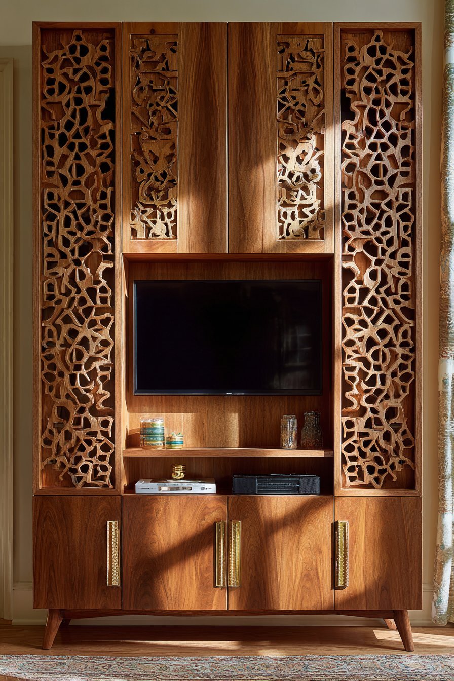 This approach suits those seeking peaceful refuge spaces. The Japanese aesthetic creates calm environments naturally. The natural materials ground the technology in organic elements. The precision joinery becomes meditation in itself. Eastern design philosophy transforms media walls into art and architecture.