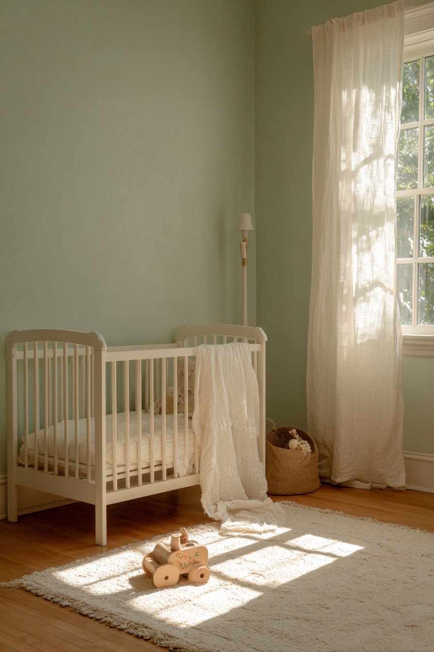 Proper light management is crucial for infant eye development and establishing healthy circadian rhythms. Mint green walls bounce natural daylight throughout the room, reducing dark corners where shadows might create visual unease. This even light distribution means babies can see their surroundings clearly during daytime activities while the color remains calming enough for naptime.