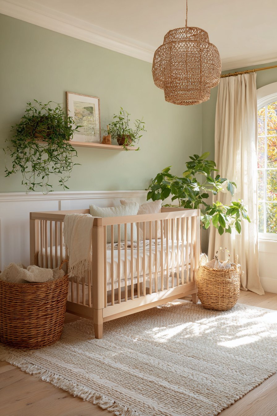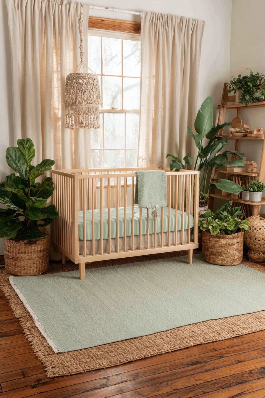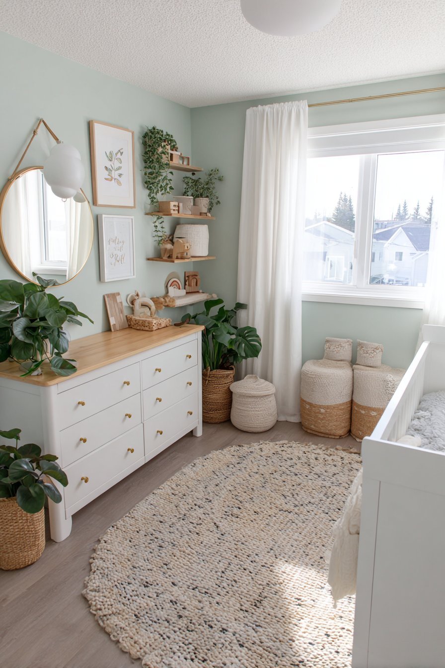 The biophilic design trend—incorporating natural elements into living spaces—aligns perfectly with mint green’s organic feel. Adding real or faux plants, natural fiber mobiles, and wooden toys creates a cohesive environment that supports infant development. Research suggests exposure to natural elements and colors improves cognitive development and reduces stress even in very young children.