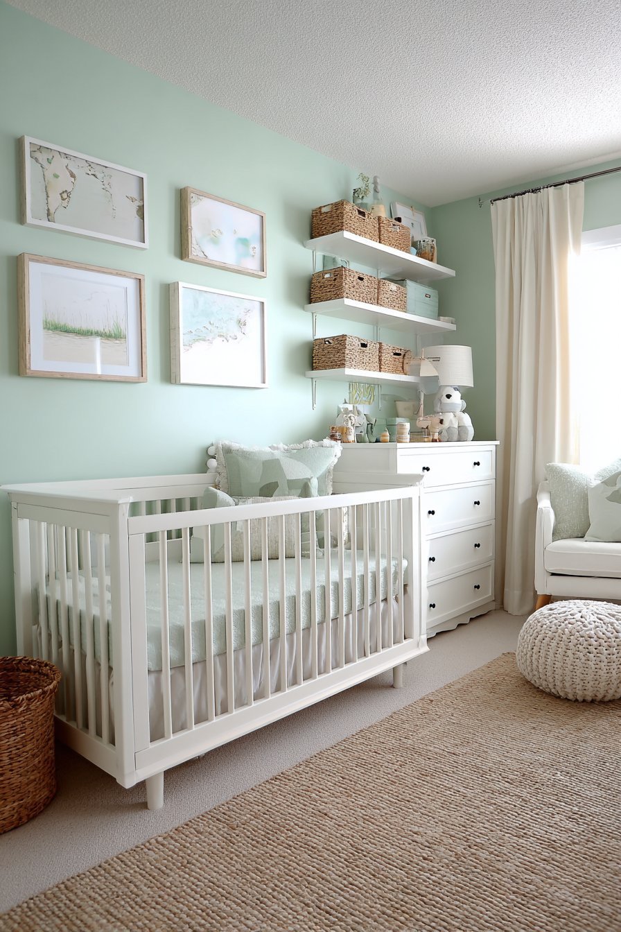- Maintain consistent mint green tones throughout the nursery to avoid visual disruption