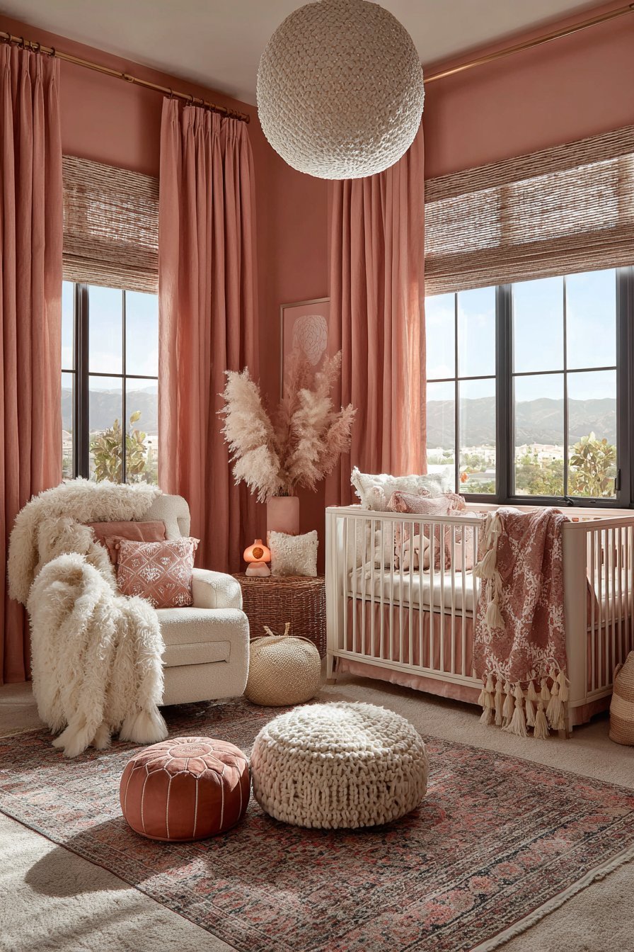 Textiles are the warmth of a nursery — the element that transforms a beautifully painted, well-furnished room into a truly cocooning, sensory-rich environment. Layers of soft fabric in complementary tones and textures create the kind of enveloping comfort that settles both baby and parent, signaling safety and rest through every sense simultaneously. In a pink nursery, textiles are also the primary vehicle for introducing pattern, texture, and tonal depth in a soft, non-stimulating way.