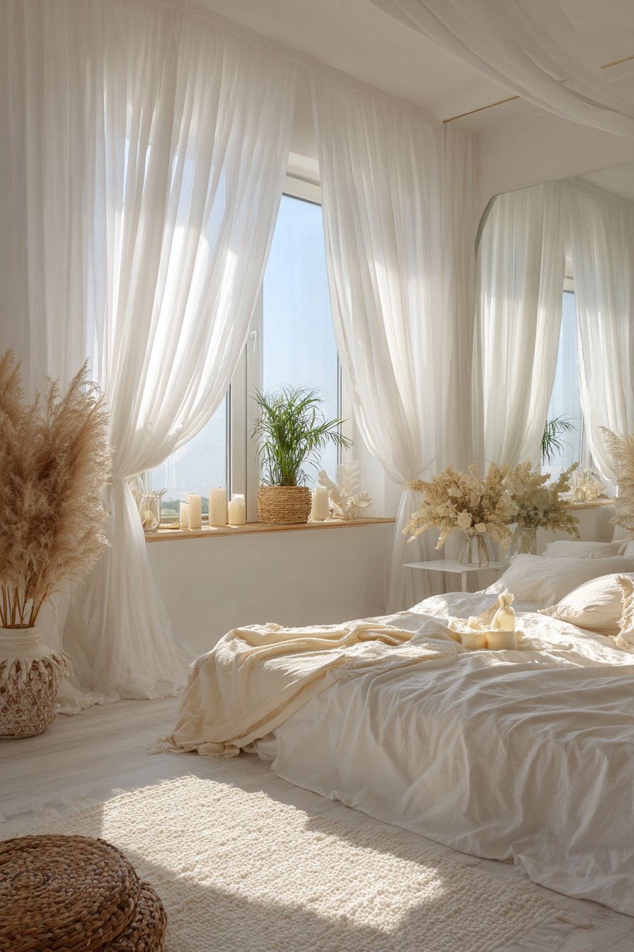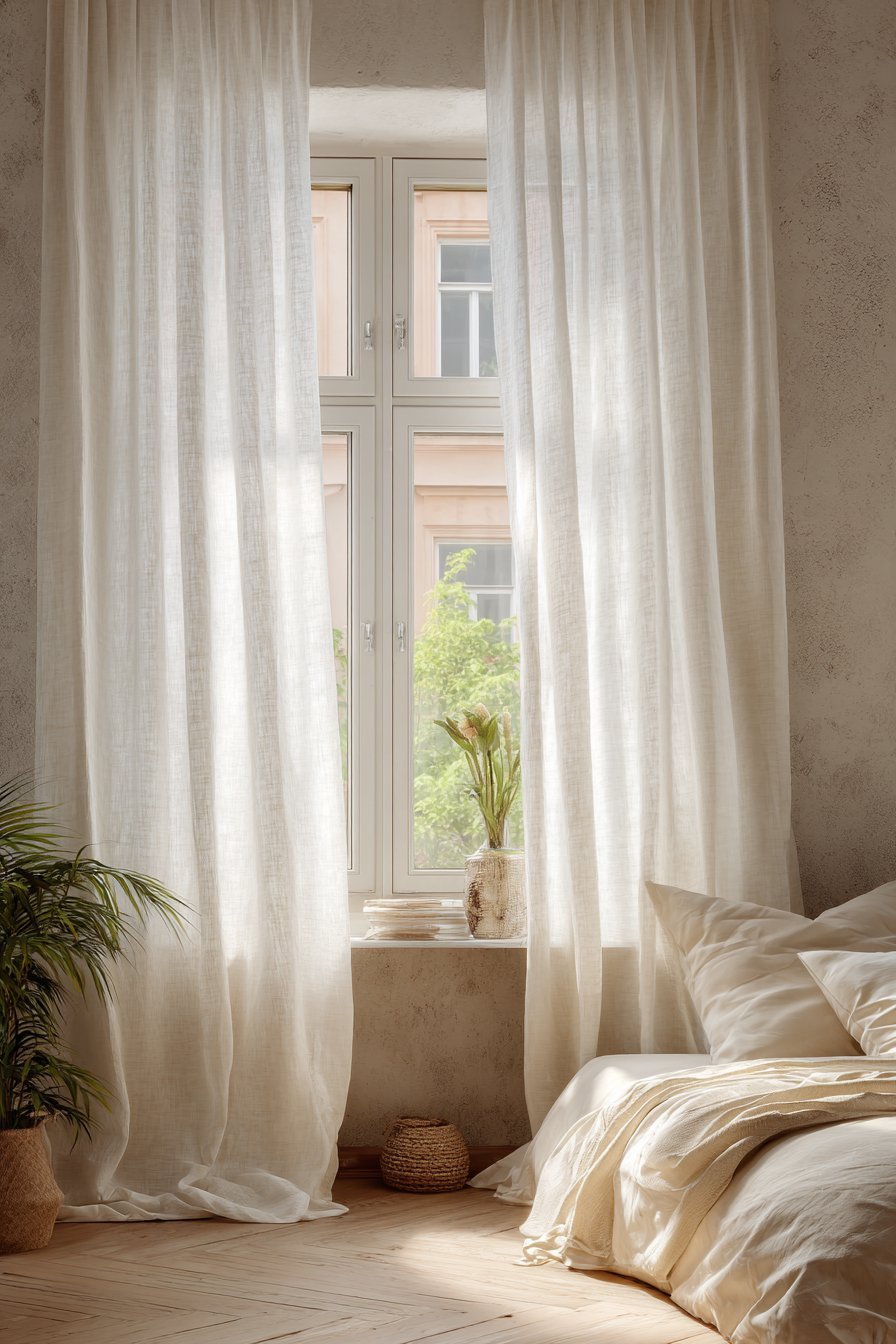 Keep window treatments minimal and functional rather than ornamental. Heavy drapes block precious natural light and create visual weight. Instead, opt for lightweight linen curtains or roman shades in white or cream. These allow light to filter through while providing privacy when needed.